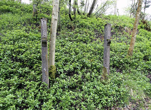 Concrete posts for supporting the sign at Stobs station in May 2011.