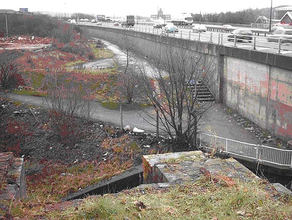 Looking east from Stockport Tiviot Dale Station in December 2004. The bridge over the River Tame has long since been removed.