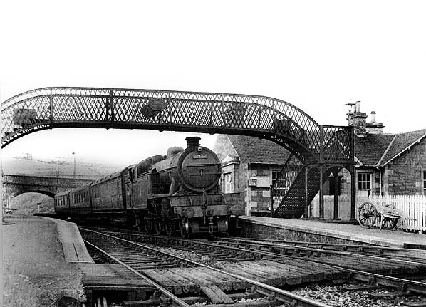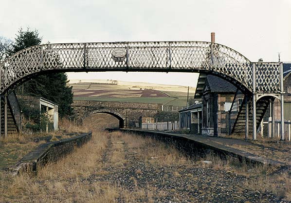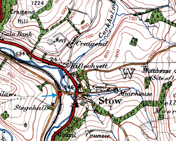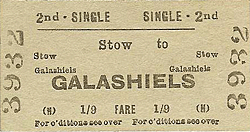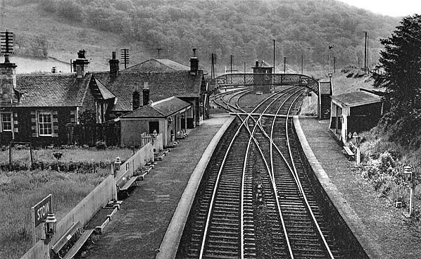 Notes: Stow station opened on 1 November 1848 as part of the NBR's line to Hawick. It served the village of Stow (population 620 in 2004) and was well sited on the west side of the village centre. The village was important for its woollen and agricultural industries in the 19th century. The station was sited on a severe curve, which restricted the speed of passing trains.