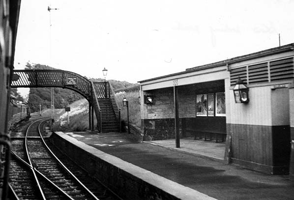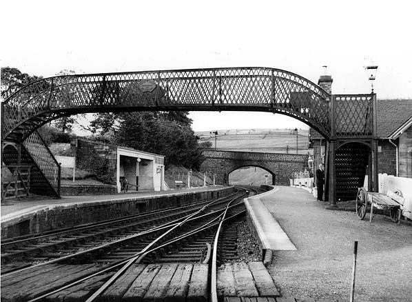 The down platform had a stone and timber open-fronted waiting shelter with a gents’ toilet at its north end. The two platforms were spanned by a lattice footbridge at the south end.