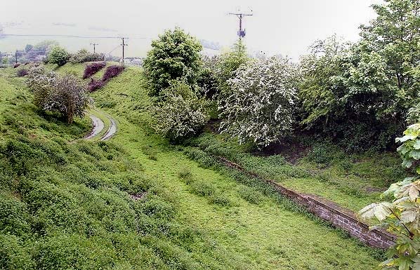 ![]() Both platforms at Stow station extended under the road bridge. The down platform is buried but the up platform can still be seen. (6.2005)