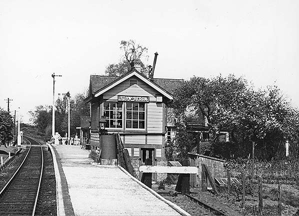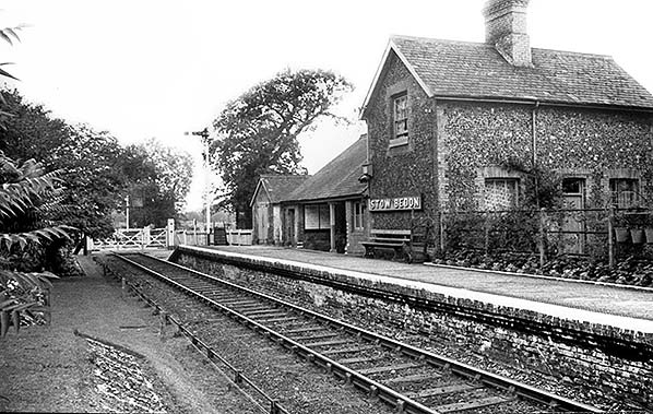 The station platform and buildings were located to the south of the level crossing over the Thetford road, on the east side of the running line. The buildings were handsomely constructed of local Norfolk flint under a slate roof. The line was single through the station and served by one platform. The signal box was on the platform and some distance from the level crossing which was probably operated manually, rather than by a wheel in the signal box. There were no points north of the signal box but rods led from the box towards the crossing gates suggesting that they interlocked the gates and signals preventing the gates being opened manually without appropriate signalling. The northbound starter signal was on the platform beside the level-crossing. From late Great Eastern days onwards, before 1923, no tickets were issued at Stow Bedon station; passengers obtained them from the guard on the train.