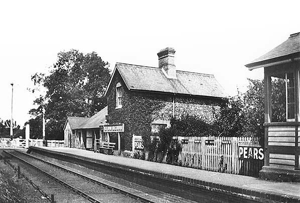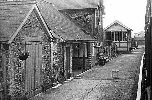 The station buildings were, like those at Watton and other stations on the branch, part two-storey and part single with the roof-line of the higher building at right angles to the platform edge. On the platform there was a rudimentary shelter formed under the roof of the single-storey building and supported by a cast or carved column. Photographs show no evidence of platform lighting. Gardens on the west side of the line were neatly laid out, well maintained and the station name was spelt out in stone in a flowerbed. Public access from the road was through a station yard and small porticoed entrance. Beyond the station entrance the yard continued southwards, providing access to what was probably a coal merchant’s yard; further on there was a corn mill.