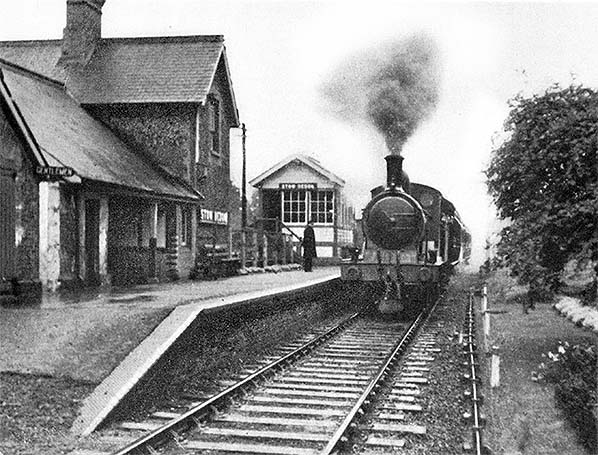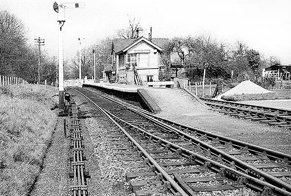 Immediately south of the platform a north-facing point gave access to a loop of track off which there was a bay siding along the rear face of the passenger platform that ran only as far as the signal box. At the south end of the short loop a facing point led to a siding with a platform on its east side, along some of its length, serving the corn mill. The loop was not set up to allow trains to pass on the single line: it was controlled by ground signals, one located directly under the southbound starter signal opposite the platform.
