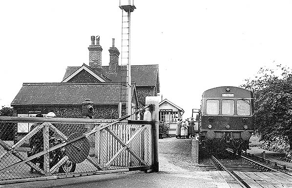 Steam-hauled passenger services ceased in 1955 when newly arrived diesel multiple units began work out of Dereham, where the steam engine shed closed at the same time. The 1953 steam-worked timetable shows six through trains with no extra services to or from Watton. Sunday saw two trains, both late in the day, the first activity being at 4.32 pm from Swaffham. Indeed, on weekdays, a traveller might reach Swaffham only as late as 9.44 pm, whilst on Sunday evening it was midnight exactly when the second train reached the town!