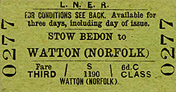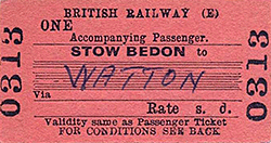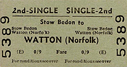 Tickets for travel from intermediate stations, except at Watton, were issued by the guard. This had happened since Great Eastern Railway days, providing evidence of low numbers of passengers using the line’s smaller stations.