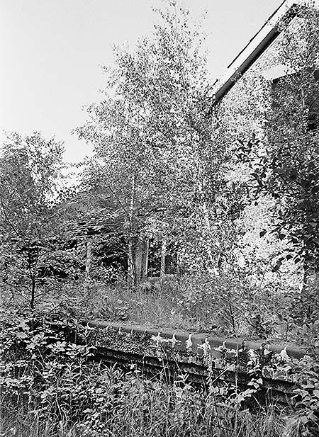 The overgrown platform in front of the stationmaster's house at Sow Bedon station in June 1975.