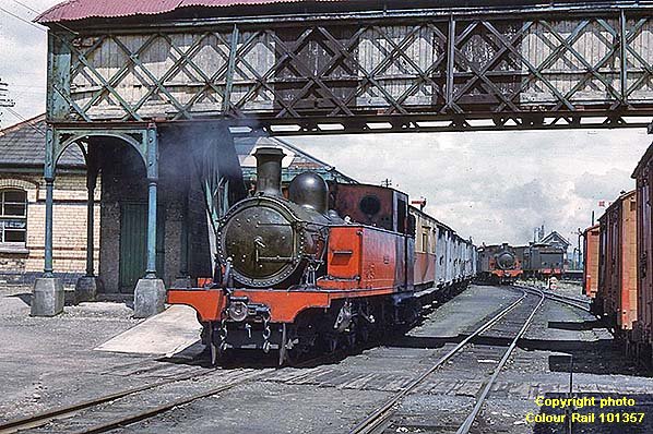 To the north of the passenger station there were goods facilities, trans-shipment sheds and a locomotive shed which were adjacent to the GNRI main line. To the south there was a goods store and sidings.