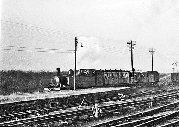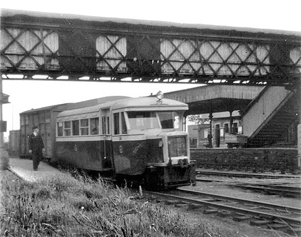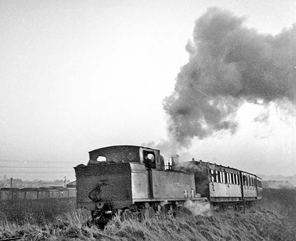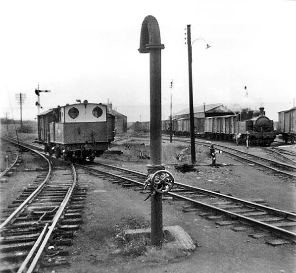 Photo from the John Mann collection ![]() The transhipment sheds at Strabane station looking north in July 1954. To left is railcar 12 and to the right CDR locomotive number 6 'Columbkille'. Copyright photo from Colour Rail ![]() On 20 November 1954 a Londonderry Victoria Road service is prepared at Strabane station. By this time trains on that branch usually consisted of just two coaches as seen in this view. The train is passing through the station on the centre road. It would then set back into the platform that can be seen to the left. at the head of the train is CDR locomtove number 11 'Erne'. Copyright photo by Michael Bunch from the Donegal Railway Heritage Centre collection ![]() The north end of Strabane CDR station seen on 31 December 1954. Arriving into the station is a service from Londonderry Victoria Road. At the head of the train is CDR locomotive 'Alice'. This was the last day for the services on that branch. Copyright photo by P J Flanagan from the Irish Railway Record Society collection ![]() A Londonderry Victoria Road train is seen heading away from Strabane station on 31 December 1954 the last day that this service would run. At the head of the train is CDR locomotive 'Alice'. Copyright photo by P J Flanagan from the Irish Railway Record Society collection ![]() The very last up service from Strabane to Londonderry Victoria Road is seen heading away from Strabane on 31 Dec 1954. The train is climbing the steep bank that carried the branch over the main line of the GNRI. To the left wagons can be seen at the transhipment sidings. Copyright photo by P J Flanagan from the Irish Railway Record Society collection ![]() On Friday 6 June 1955 CDR railcar number 10 is seen departing from Strabane on a service to Stranorlar. Coupled to the rear of the railcar is a box van. It was common practice on the CDR for railcars to haul vans in this way. The GNRI station can be seen to the right. Copyright photo by Michael Bunch from the Donegal Railway Heritage Centre collection ![]() The diesel shunter 'Phoenix' is seen at Strabane station on 6 June 1955 shunting a wagon. The shunter has just used a section of the Londonderry Victoria Road branch to assist its move. At this time the branch was out of use but it would see trains once again just for one day on 30 June 1955. To the right CDR locomotive number 6 'Columbkille' is busy preparing a lengthy goods train. Goods traffic would remain heavy right up until closure. Copyright photo by Michael Bunch from the Donegal Railway Heritage Centre collection ![]() A Stranorlar service is seen arriving at the Strabane CDR station on 6 June 1955. Operating the service is CDR railcar number 12. The signalman is taking the single line token from the driver. Copyright photo by Michael Bunch from the Donegal Railway Heritage Centre collection ![]()