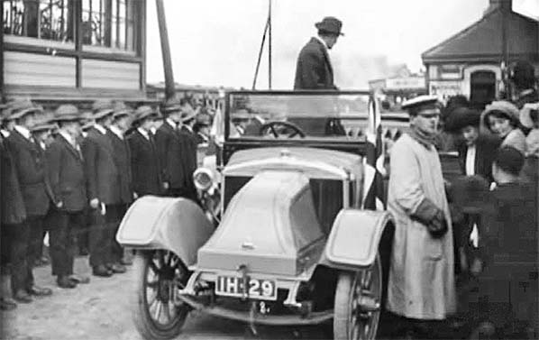 ![]() A view looking north towards the main entrance to the Strabane CDR station in 1913. To the left is the signal cabin that was erected in 1908 when the Letterkenny branch was under construction. Standing in front of the box are a company of the Ulster Volunteer Force (UVF). Addressing the crowd from a car is Edward Carson a Unionist politician who was opposed to the Home Rule Act of 1912. He would go on to become instrumental in the creation of Northern Ireland.