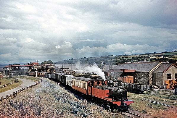 ![]() The north end of Strabane CDR station looking north on 2 August 1958. CDR locomotive 'Meanglas' is seen shunting wagons towards the transhipment shed.