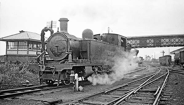 Photo by Roger Joanes from his Flickr photostream ![]() A view looking north at Strabane CDR station in 1959. In the foreground is locomotive number 2 ''Blanche' waiting to back onto a goods train. The CDR signal cabin of 1908 can be seen to the left.
