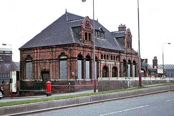 Stratford Market's street level building was boarded up and out of use in 1966. The original street level entrance was a short distance along Bridge Road which is seen on the left