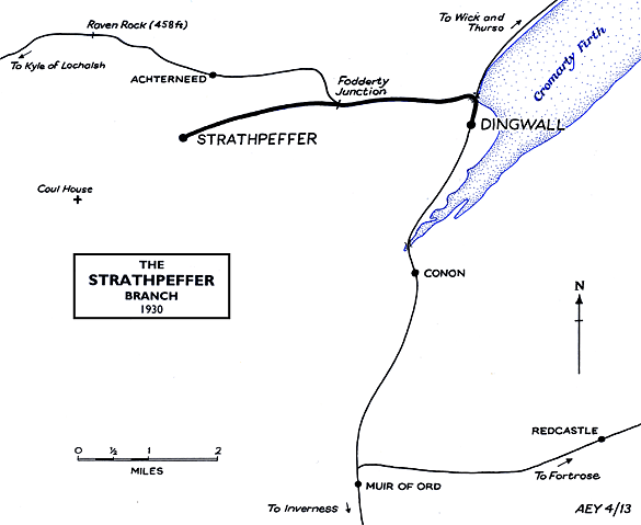 in place, and it was too late to divert it. As a result, the Highland Railway, which had taken over the Dingwall & Skye, opened a branch line, which joined the main line at Fodderty Junction.