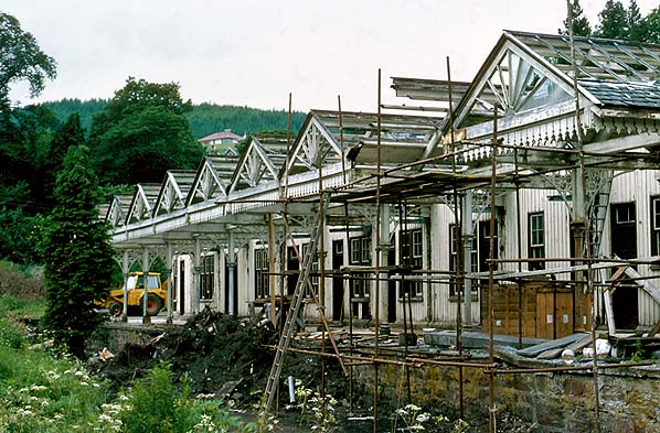 After standing empty for a number of years Strathpeffer station was restored in 1979 and is now home to the Highland Museum of Childhood, a café and a bookshop. The oldest part of the station is to the west. During the 1920s-30s, John Menzies had a bookstall at the station, built against the west wall and with a sloping display area. It sold cigarettes, tobacco, chocolates, sweets, papers (some of which were regular orders for the nearby properties), magazines and books. In the 1950s and ‘60s there was a coal merchants (K Maciver & Co) on the premises, and Bob Knox had an upholstery business in the old station building. The middle section of the station, currently housing the bookshop, was constructed in LMS days. The 2010 extension to the Museum of Childhood lies to the east. The museum is open from April to October and can be opened for groups at other times by arrangement. In addition, the old run-round loop has been filled in with soil, though curiously, the trackbed on the platform side has not. With the closure of Achterneed and Strathpeffer, the lasting irony is that, to this day, the Kyle line still does not serve the largest centre of population west of Dingwall.
