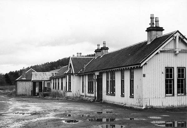 ![]() Station Name: STRATHPEFFERStrathpeffer station forecourt looking east in April 1972. The canopy projecting into the station forecourt was added in LMS days. The goods shed is seen in the background.