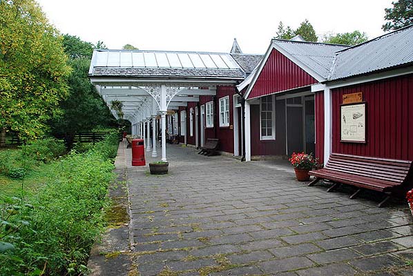 ![]() Station Name: STRATHPEFFERStrathpeffer station looking west in October 2009. The building on the right was added in LMS days and incorporates a covered area that projects into the goods yard on the far side of the building. This is now a book shop.