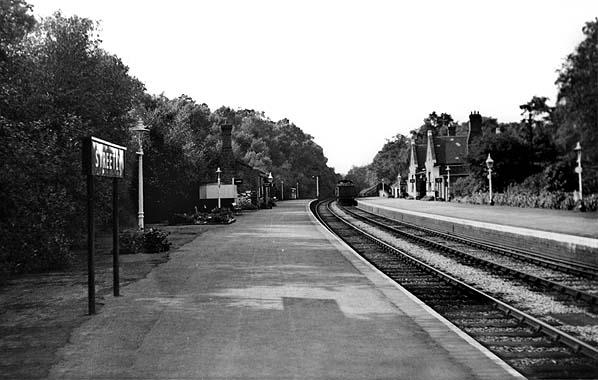 The service did not improve much in the 1950s with the summer 1957 timetable showing only five trains in each direction Monday-to-Saturday. On Saturdays the 6.35am up train ran to Kingswear Devon. Between 2.15pm and 9.49pm on Sundays there was an hourly service of eight trains in each direction running between Walsall and Sutton Park. More trains ran on Sundays than mid-week presumably to carry passengers to Sutton Park for a leisure visit. In the late 1950s BR fitted totem name signs in the station.