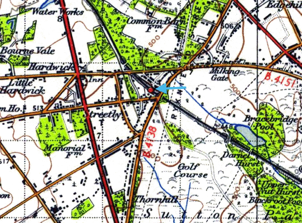 Streetly was located in a cutting on the west side of Thornhill Road. Sutton Park, a popular area of natural beauty was just to the east of the station. The line passed through the park and the WW&MJR had faced difficulties obtaining permission to build a line through it.