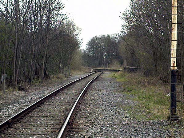 Looking north at the site of Stubbins Junction in 2009. The junction was located just before the platforms of Stubbins station which can be seen in the middle distance. Up until December 1966 Stubbins Junction was a busy place. Trains travelling towards Bacup took the route through the station while trains travelling towards Accrington took a route that went to the left of the station.