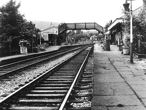 ![]() In 1965 Summerseat station looked an idylic place. In this view looking north from the south end of the southbound platform the station is well cared for and has an abundance of floral displays. Also by this date the station had been provided with a footbridge which made crossing the line much safer.