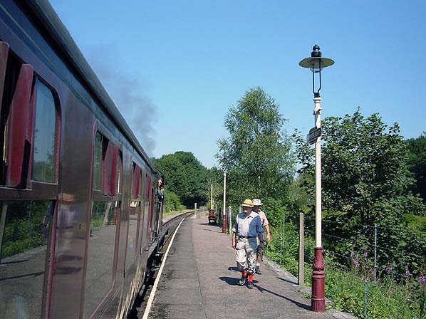 ![]() Looking north at Summerseat station in July 2006 as a train for Rawtenstall draws into the station.