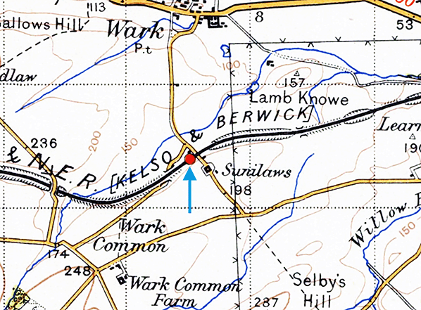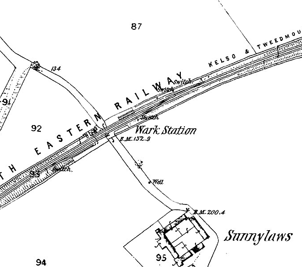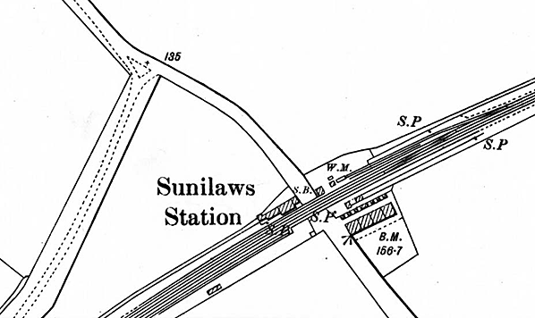 As noted above, when the station opened it was known as Wark, named after the village about ¾-mile to the north. Almost coinciding with this station’s appearance in Bradshaw, another of this name, also in Northumberland, opened on the Border Counties Railway between Hexham and Reedsmouth. The North British Railway (whose station at Kelso was used by the North Eastern Railway [NER] trains from Berwick) had a strong interest in the Border Counties from the outset and quickly took it over. The NER was disinclined to share any of its stations’ names with another company, or to repeat a name in its own system, so to avoid confusion the station on the Kelso branch was eventually renamed, taking the name ‘Sunilaws’ from a nearby farm - although it appears that the spelling was incorrect. On OS maps of 1863 and 1899 the farm is ‘Sunnylaws’ but by the edition of 1924 the farm seems to have adopted the railway spelling. To make matters still more confusing, Sunilaws was actually in the parish of Carham – whilst Carham station was in the parish of Sprouston.