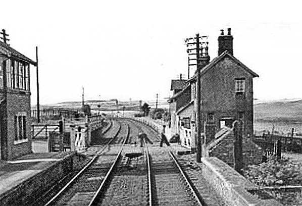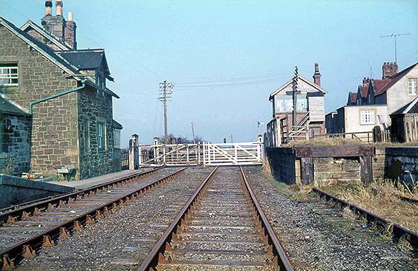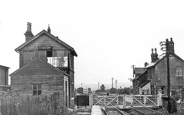 The two passenger platforms at Sunilaws were staggered either side of the level crossing. The up (Berwick-bound) platform, 88yd in length, was south-west of the crossing and the longer down platform (99yd) was north-east. At the neighbouring Carham station the platforms were on the opposite sides of the level crossing: up to the north-east and down to the south-west. The stationmaster’s house and offices were on the up side, close to the crossing. Although the office range was on the platform, facing the ramp, in front of the house was a track-level path from the wicket gate at the level crossing. The two-storey house was of smooth but uncoursed stone, with a dormer window facing the platform, adjoined to the north-east by a taller building, of simpler design. One house was possibly the residence of the stationmaster and the other of the porter – an arrangement found at some of the large station buildings on the ECML. A single-storey office range, notable for its extremely tall chimneystack, extended south-west from the station house. On the down platform an enclosed timber hut close to the crossing appears to have been the only shelter. Between this building and the crossing was the signal box, an N4 design with a brick base, constructed in 1901; it was equipped with a McKenzie & Holland 26-lever frame and gate wheel. The box was the second at the station, but little is known of the first, opened c1880, including its precise location. The coal yard at Sunilaws was on the up side of the tracks, facing the down platform and provided with a weigh office and loading bank. Other goods traffic was handled at a siding on the opposite side of the level crossing, on the down side and facing the up platform. Here, too, there was a loading bank. A terrace of four railwaymen’s cottages stood behind the down platform.