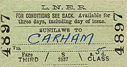 During the LNER era it seems that Sunilaws station received little investment. It is likely that the company installed new nameboards, but no photographic evidence has been seen of this. The winter 1937/38 train departures in the table below include services operated by steam railcar (indicated by * ‘one class only’) as an economy measure. A particularly interesting feature is the arrival of the railcar from Berwick late on Saturday evenings to terminate at Sunilaws at 10.01pm; it sets off back to Berwick at 10.29pm. The choice of Sunilaws as terminus is curious. Was its purpose to enable the families in the remote station house and railway cottages at Sunilaws to enjoy some Saturday evening revelry in Berwick – with an option of returning promptly to Berwick if they wanted still more? Perhaps motor buses through the villages enabled inhabitants of Carham and Sprouston to enjoy the fleshpots of Berwick without the need for a train to serve them. It is not known how long this peculiar service to (and from) Sunilaws was provided; it is not shown in the summer 1938 timetable.
