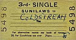 NER records show that the first stationmaster of Sunilaws in the twentieth century was Mr W Windus who was in post until November 1900. His replacement was Mr A McKenzie whose tenure lasted for only a few months; Mr J Forster was in place from the end of February 1901 until November 1903. In December 1903 Mr R Richardson became stationmaster and he held this post until November 1913; he retired at the end of the year. Mr W Harrison was his replacement, and his term of office extended to May 1917. After a short interregnum Mr H Pardoe was appointed in July 1917, and after his departure in June 1920 a Mr Purves became stationmaster in September 1920. While he was in office the station was transferred from the NER to the newly formed London & North Eastern Railway on 1 January 1923. The timetable below shows a diminished service on the section of the branch between Coldstream and Kelso.