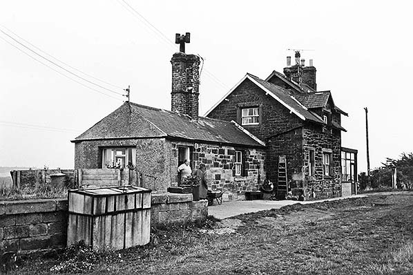 Photo by Alan Young ![]() The stationmaster’s two-storey house and adjoining single-storey offices at Sunilaws station, are seen looking north in September 1977. The former up passenger platform is in the foreground, its ramp having been demolished.