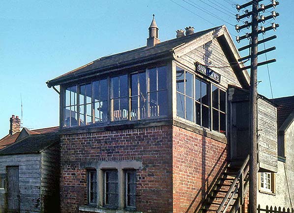 Sunilaws signal box photographed probably in winter 1963-64. The railway cottages are seen