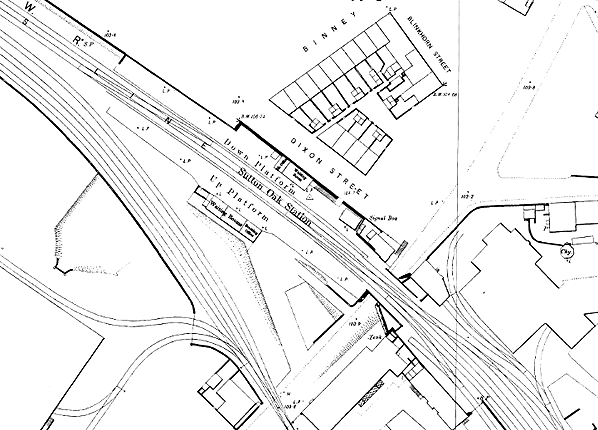 By 1879 a signal box had been opened at Sutton Oak station. It was located on the down platform towards the south-eastern end.
