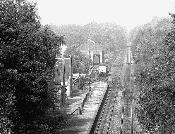![]() A Class 25 locomotive rushes through the station in the 1970's with a train load of vans towards Bescot. Photo by Richard Marriott ![]() Looking in the Walsall direction in the 1970's as a Class 25 locomotive runs light engine towards Castle Bromwich. Photo by Richard Marriott ![]() Sutton Park down platform station building seen from the approach road on 26 September 1980. Photo by Steve Jones