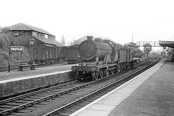 Steam locomotives worked out of Swaffham engine shed, a sub-shed of Norwich Thorpe (shed code 32A in BR days). Photographs from the 1950s show passenger work in the hands of D16 4-4-0s and goods trains hauled by various former Great Eastern 0-6-0 types. Latterly Class 03 diesel shunters were to be found working goods turns on the branch.