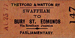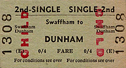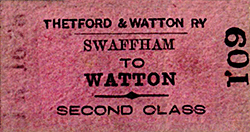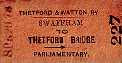 Tickets for travel from intermediate stations, except at Watton, were issued by the guard. This had happened since Great Eastern Railway days, providing evidence of low numbers of passengers using the line’s smaller stations.