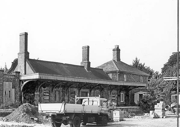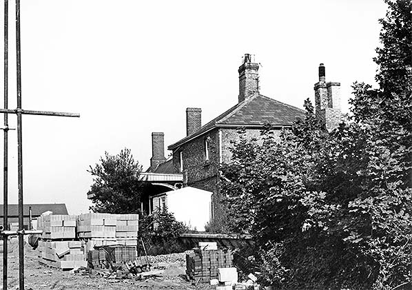Photo by Geoff Skelsey ![]() One of a series of pictures taken at Swaffham station by John Mann in July 1982 which show the station buildings and land being surrounded by and, in the case of the goods shed, absorbed into a new trading estate. The main buildings on the south platform are seen looking south-west.