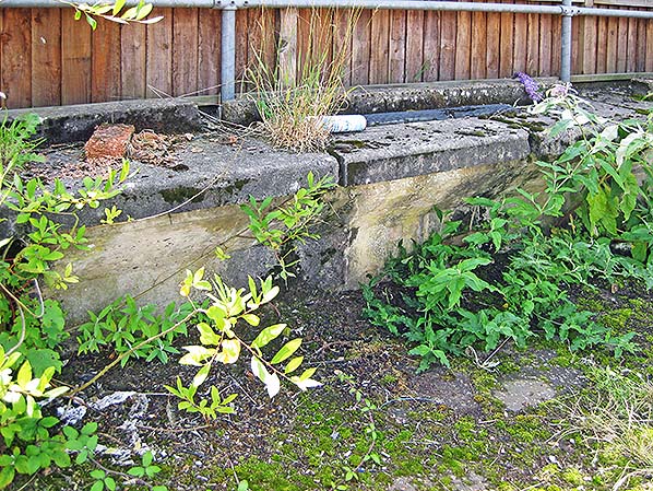 ![]() Some of the platform edging at Swaffham station survives in August 2017.