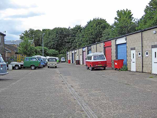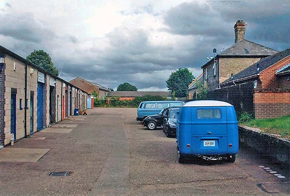 Photo by Nick Catford ![]() Looking east along the trackbed at Swaffham station in 2008. The former trackbed is now a car park for the industrial units seen on the left.