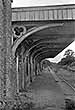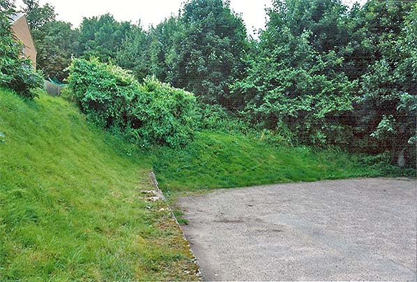 Photo by Gareth Kelly ![]() Looking west from the partially buried west end of the westbound platform in 2008. Beyond the trees t5he trackbed is occupied by a cycleway and footpath for about a mile.