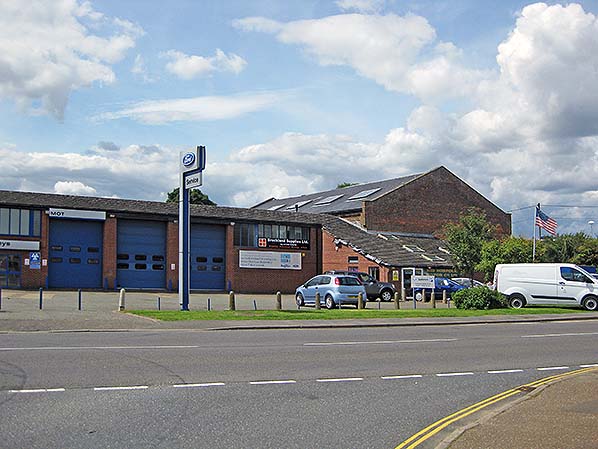 ![]() In August 2017 the Mid Norfolk Motor Company occupies the former Swaffham station goods shed near the site of the level crossing.