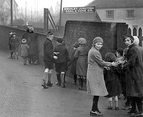 Photo from Swanley History Group ![]() Goldsel Road bridge over the Sevenoaks branch in 1935. The entrance to the goods yard is on the far side of the bridge alongside the office of the Swanley Junction Coal & Coke Company.