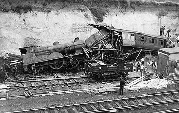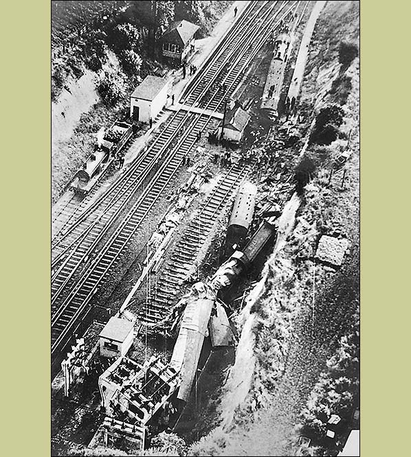![]() The aftermath of an accident which occurred at Swanley Junction on Sunday 27 June 1937. The locomotive, L class 4-4-0 No.1768, was hauling the 8.17pm train from Margate to Victoria via Canterbury West, Ashford and Maidstone East. Running late and out-of-path the train passed, at speed, a signal at danger. 'At speed' should not be taken out of context and it means simply not slowing or stopping; there was a 20mph restriction round the curve through Swanley Junction and witnesses estimates varied between 20 - 25mph and as high as 50mph. Lieutenant - Colonel A Mount, in his Report for the Ministry of Transport, concluded that speed was nearer to the lower estimate. The train had been due to make an addition stop at Swanley Junction to pick up passengers who had missed a connection owing to a late-running push-and-pull train from Gillingham. The driver of the ex-Margate train was aware of this but precisely why he failed to stop was never established, Lt Col Mount being forced to conclude that the cause of the accident was probably down to a combination of short notice and poor communication. Signalman Reeves, on duty in Swanley Yard box* did, however, readily admit that he had made an error by accepting the ex-Margate train without sufficient overrun. Under scrutiny this admission can be attributed to the short notice and poor communication as Lt Col Mount was happy to put Reeves’s actions down to oversight. Upon passing the signal at danger the train collided with a loaded wagon and empty 2-car passenger set which were standing on the siding on the up side at the London end of the station (this siding can be seen in the photograph showing SE&CR No.507). The ex-Margate train was loaded to seven carriages: 3-set No.535 and 4-set No.182 which comprised brake third No.3341; composite No.5418; brake third No.3324 and brake third No.4090; composite No.5175; composite No.5176; and brake third No. 4089 respectively. There were 100 passengers on the train of whom, sadly, four lost their lives. [*It is assumed signalman Reeves was on duty in Swanley Yard box, as opposed to Swanley Junction box, as the Report did not make this entirely clear.]