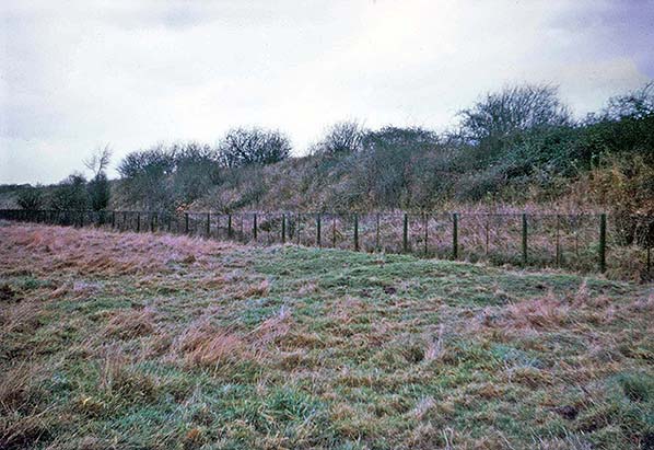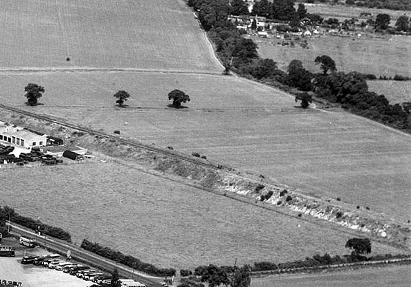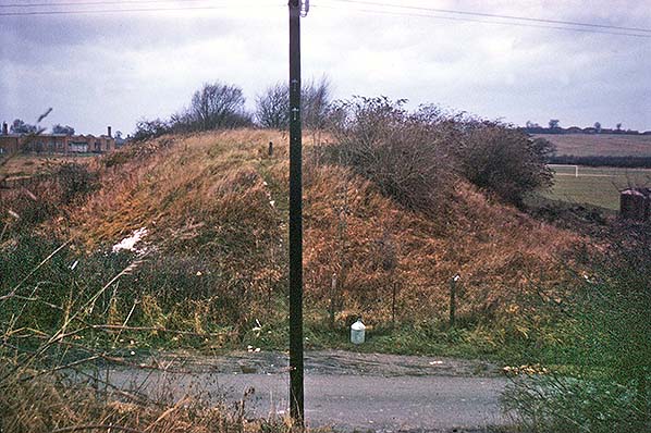 ![]() The embankment running north from Chalky Lane (seen at the bottom) in June 1949. The track ends before Chalky Lane is reached.