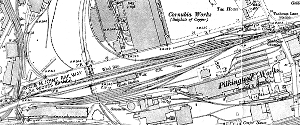 Connections from the yard led directly into the Pilkingtons chemical works on the south side of the line and into the Cornubia works on the north side. There was also a connection to the Sullivan’s works to the east of Tanhouse Lane.