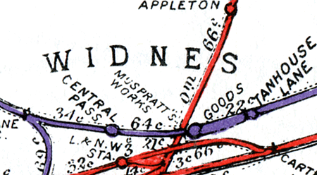 The goods facilities at Tanhouse Lane were located west of the lane from which they took their name and east of the industrial chemical manufacturing town of Widnes.