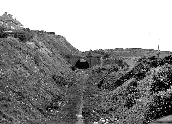 ![]() Station Name: THORNEYWOOD![]() Looking south at the north portal of Sneinton Tunnel from Carlton Road bridge in the 1960s. Thorneywood station is behind the photographer on the far side of Carlton Road. The metal gates on the right mark the position of the siding into the Nottingham Builders' Brick Company works.