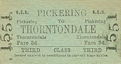Following the withdrawal of the Bill the North Eastern Railway were quick to step in promoting their own line from Pickering but instead of running up the Forge Valley this line would continue eastwards to join the Scarborough - Malton/Bridlington line at Seamer three miles miles south of Scarborough. Having received their Act the North Eastern Railway were in no hurry to build the line which eventually opened to the public on 1st May 1882. Intermediate stations were built at Forge Valley (serving East and West Ayton), Wykeham, Sawdon, Snainton, Ebberston (Wilton until 1903) and Thornton Dale. Trains ran between Pickering and Scarborough, also calling at Seamer which had opened with former York and North Midland route to Scarborough in 1845. The line retained the earlier name of the The Forge Valley Line, it was single track throughout with a passing place at Snainton, the only station with two platforms running for 1614 miles from Seamer Junction to Mill Lane Junction south of Pickering where it joined the NER's lines from Rillington and Bishophouse Junction on the York - Darlington main line .Services were four weekday trains each way; there was never a Sunday service and few excursions except for some to and from Helmsley. In 1928 the line became the first in the area with a regular Sentinel steam railcar service for passengers introduced by the LNER in an attempt to keep costs down. Railcars were considered suitable for this line as passenger traffic was light and there were no steep gradients. The Sentinels were mechanically unreliable and struggled to cope with attachments such as horseboxes, commonly required on rural lines. All the stations except Wykeham had facilities to deal with livestock, and such agricultural produce comprised most of the freight on the line, although there was also stone from a quarry at Thornton Dale.