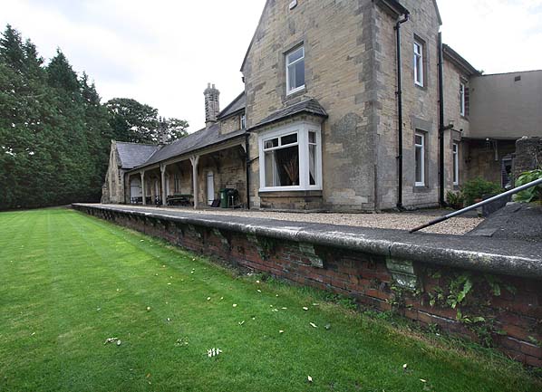 Thorp Arch station in September 2010. The bay window allowed the stationmaster to look in both directions along the platform from his sitting room.