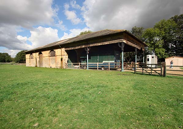 Thorp Arch goods shed in September 2010. The 2 x 2-bay canopy is an unusual feature, doubling the length of the shed. Lunettes either side of the central doors allowed light into the shed